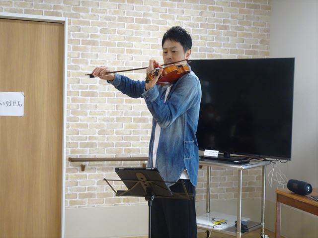 令和7年10月22日(水)午後からバイオリン演奏者 中西 弾さんが来所しバイオリン演奏会を開催しました。本格的なバイオリン演奏を聴くことははじめての方が多く皆さん素敵な音色にうっとりしていました。
