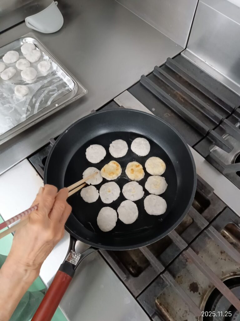 利用者様にお手伝いして頂き、里芋みたらし団子と里芋チップス😋を作りました。