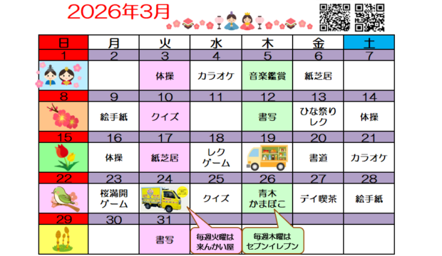 遅くなってしまいましたが、3月のご予定をお知らせいたします!!
