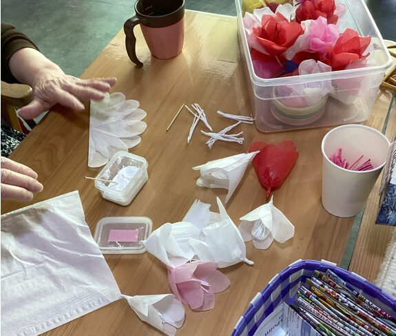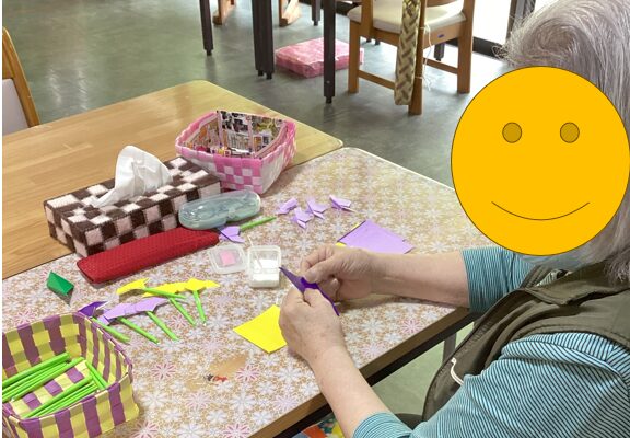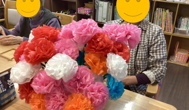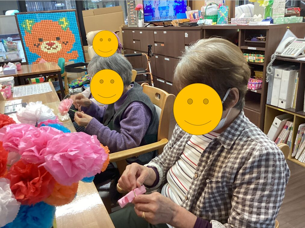 デイでも利用者様が作ってくださった、かわいらしい手作りの花がたくさん咲いています。